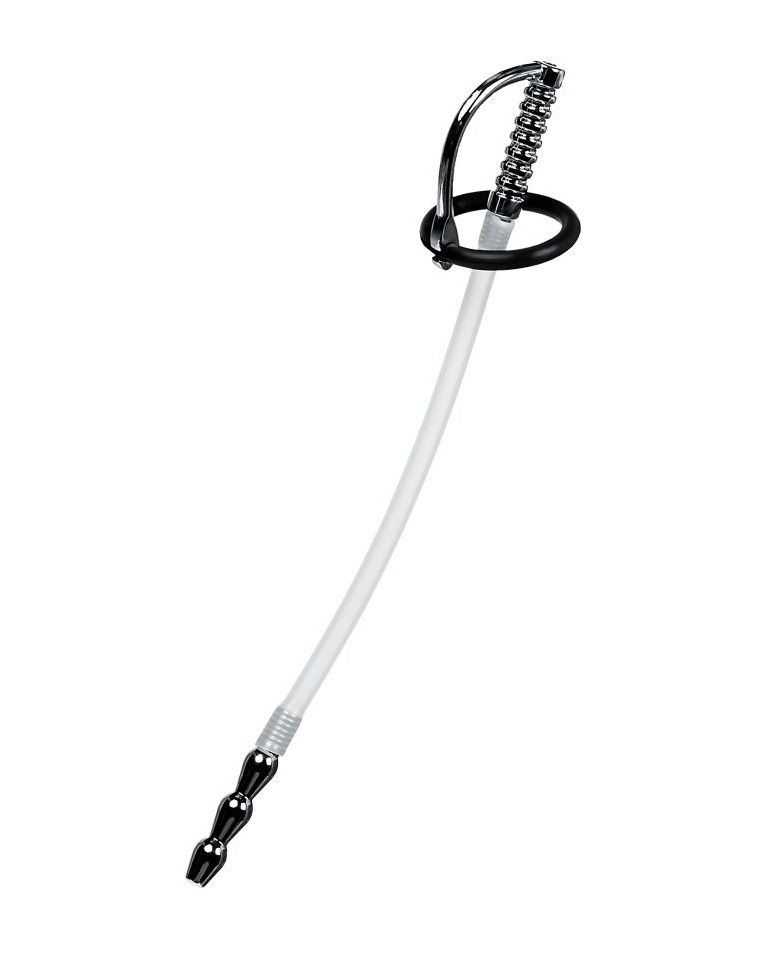 Уретральный катетер с силиконовой трубкой. Длину силиконовой части начинающие могут уменьшить самостоятельно. Мягкое кольцо для фиксации на головке. В комплект входят 2 кольца. Длина силиконовой части - 15 см. Диаметр колец - 2,5 и 3 см.